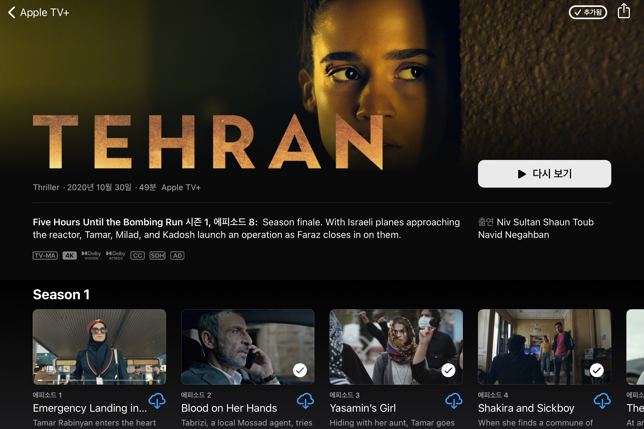 두 번째 추천 작품은 테헤란입니다. 이스라엘에서 제작한 드라마로, 이야기보다는 배경이 참 흥미롭습니다. 우리에게 다소 낯선 중동을 배경으로 이스라엘과 이란의 치열한 첩보전이 펼쳐집니다. 실제 촬영지는 테헤란이 아니라고 하지만, 중동의 느낌을 한층 살린 덕분에 낯선 나라를 보는 재미가 상당합니다.