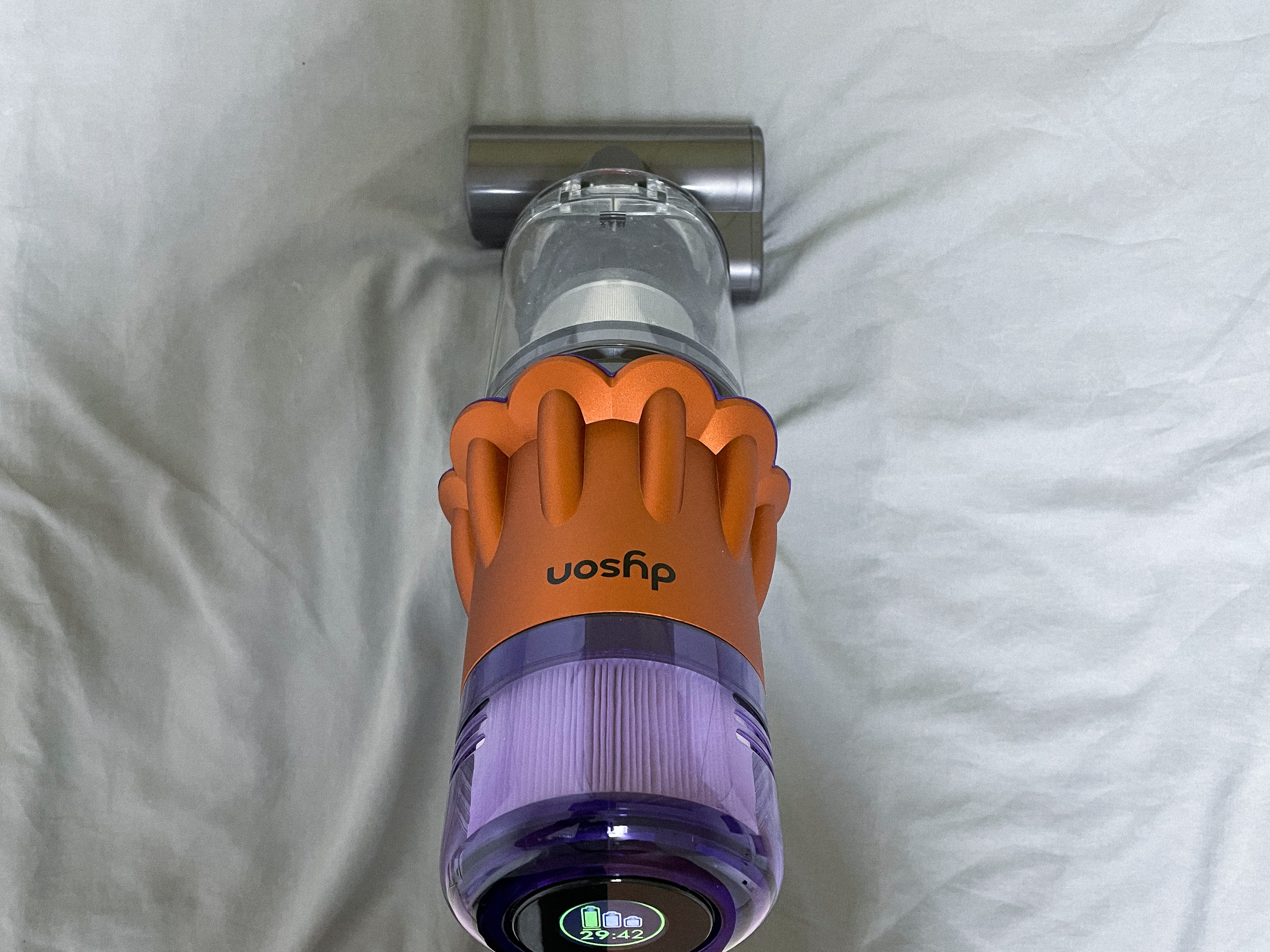 다이슨에 따르면 다이슨 특유의 강력한 흡입력은 유지하고 있으며, 무게는 V11 대비 30% 가볍고, 크기는 20% 더 작다고 합니다. 봉과 헤드를 포함한 무게는 겨우 1.9kg. 저중량 핑크 덤벨(2kg)보다 가볍고, 웬만한 노트북보다 가볍습니다.