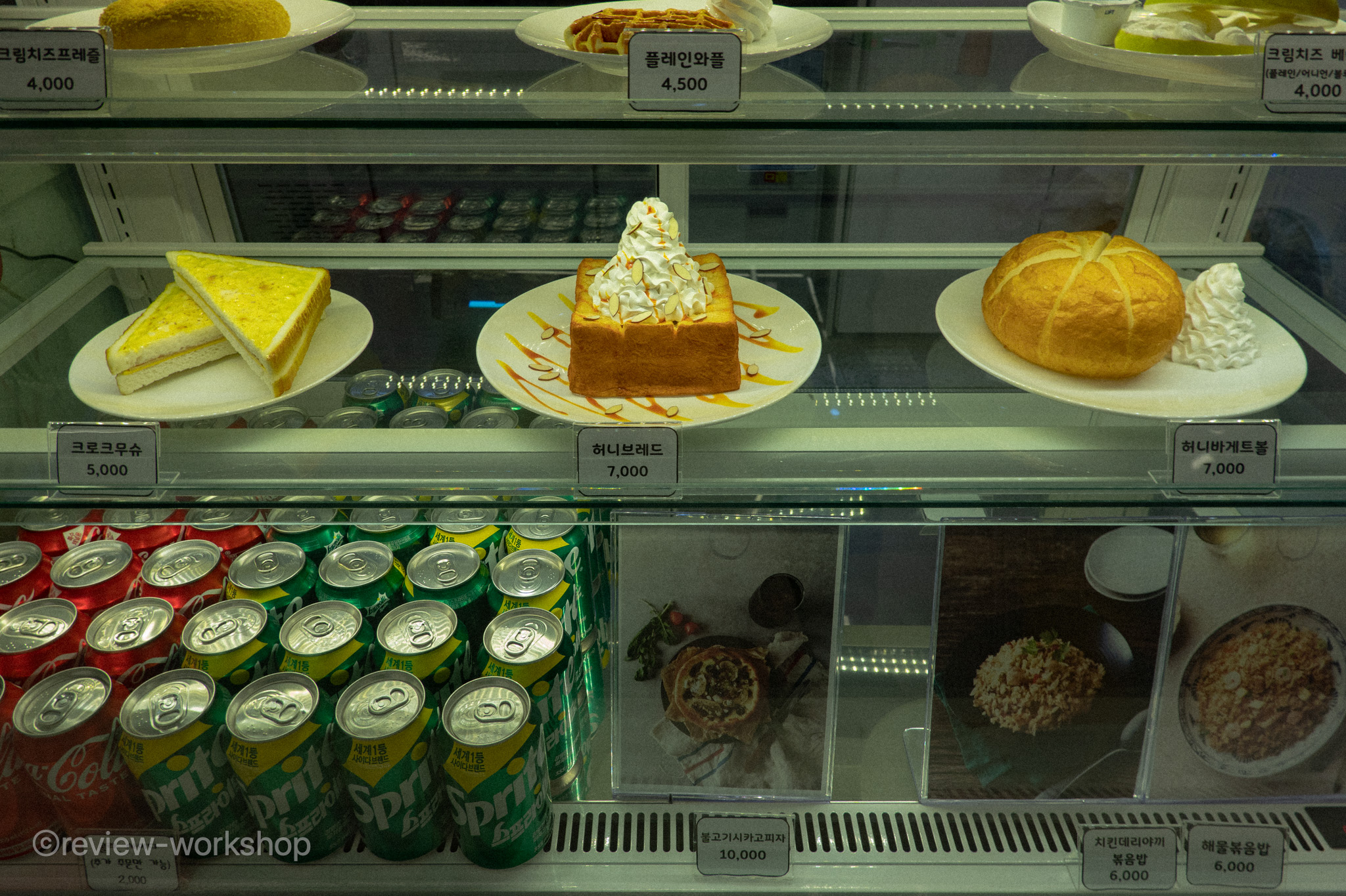 음료 외에 먹거리도 판다. 떡볶이, 볶음밥, 피자 등으로 식사를 해결할 수 있다. 떡볶이는 평범한 맛이고, 볶음밥은 김치볶음밥이 먹을 만하다. 피자와 해물볶음밥은 호불호가 나뉠 수 있겠다. 개인적으로는 ‘불호’에 가까웠다. 크로크무슈나 허니브레드 등 디저트도 판매하는데, 맛은 무난한 수준이다.