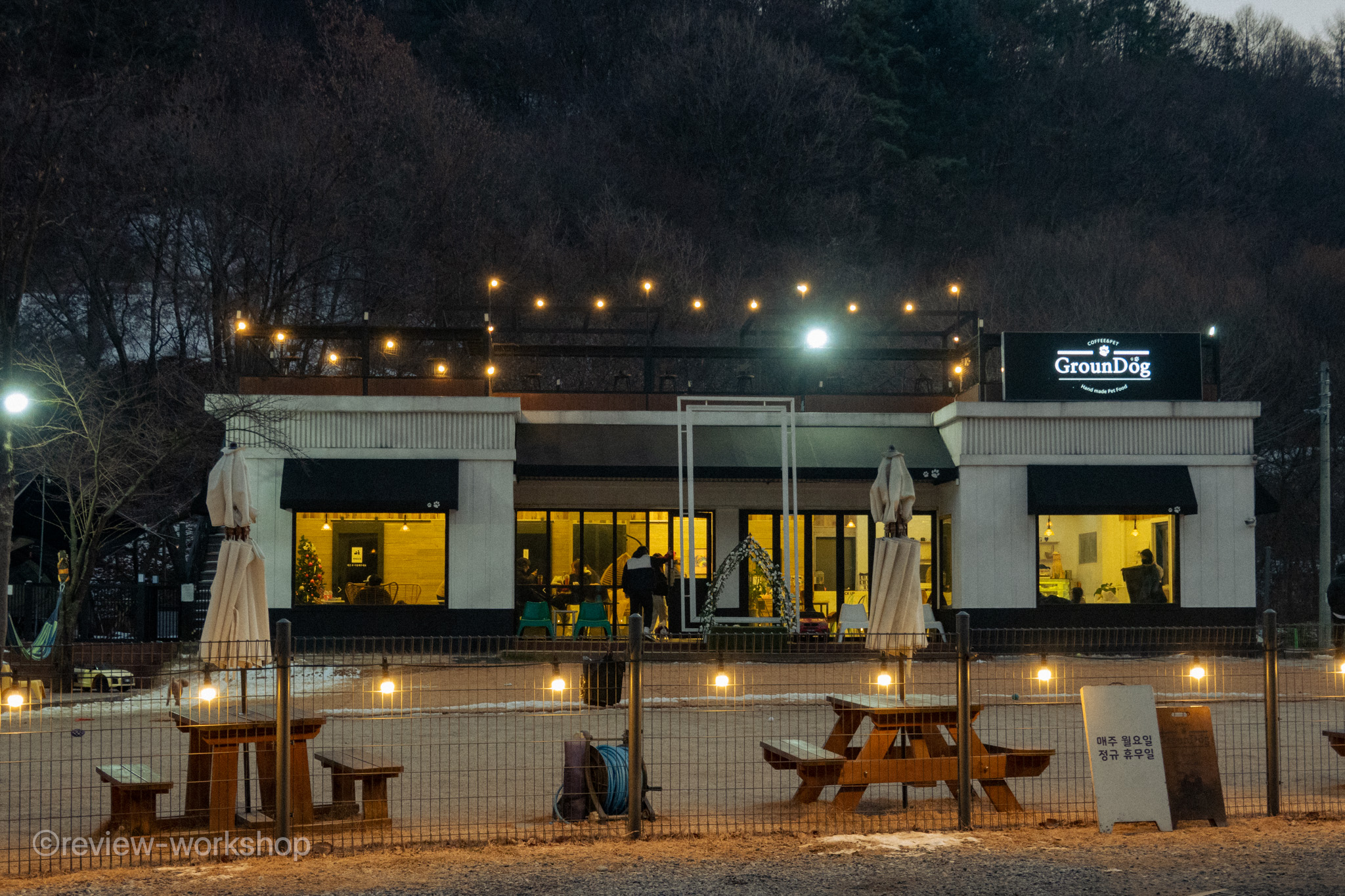 해가 저물면 그라운독 곳곳에 불이 켜진다. 반짝이는 전구들이, 아늑한 캠핑장을 연상하게 한다. 제법 분위기가 있으니 저녁까지 시간을 보내고 와도 좋겠다. 물론 늦게까지 머물진 못한다. 그라운독은 보통 7~8시 사이에 문을 닫는다.