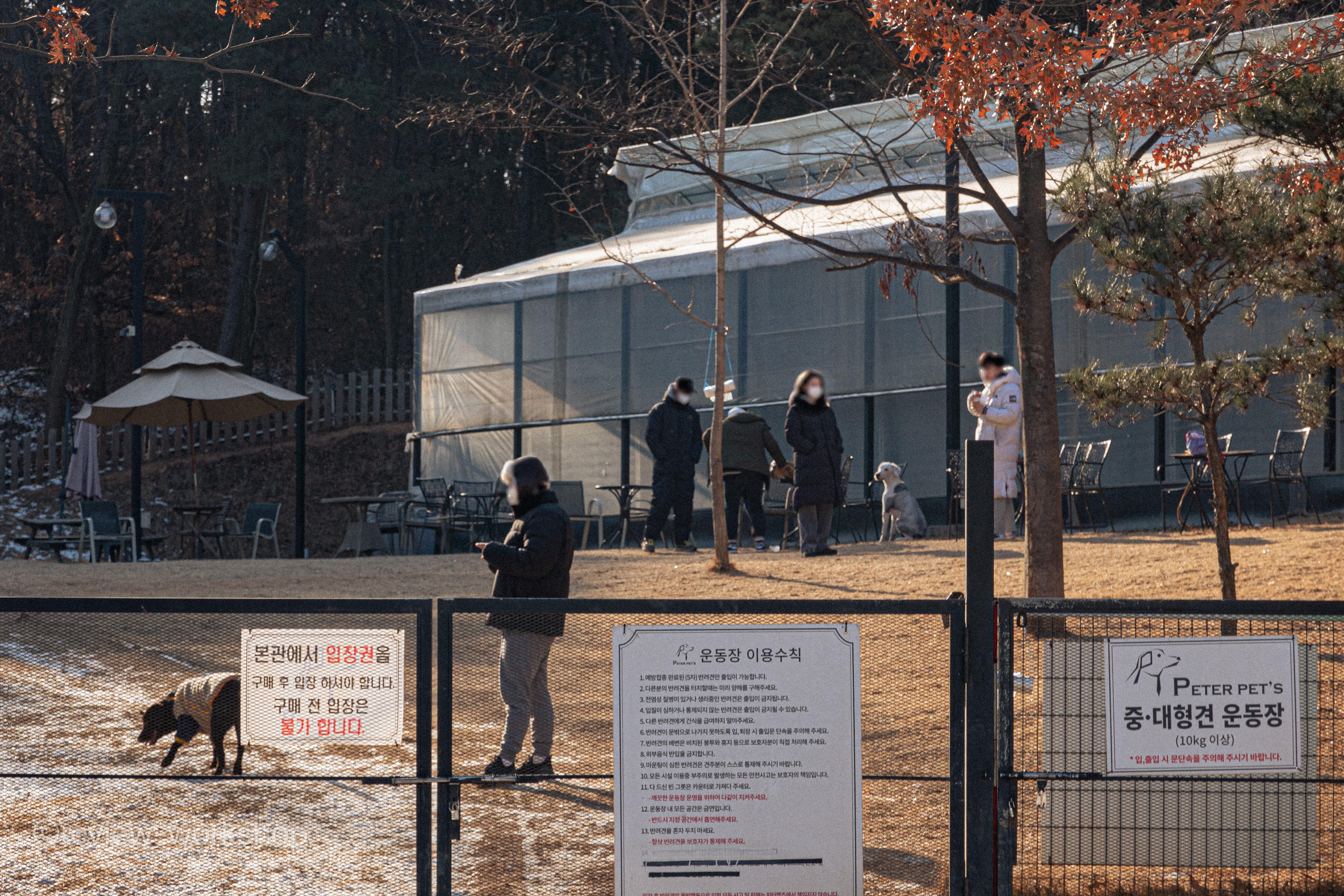 중형견을 데리고 다니는 우리 일행은 중대형견 운동장으로 먼저 향했다. 참고로 12kg까지는 소형견 운동장을, 10kg 이상은 중대형견 운동장을 이용할 수 있다. 직원에 따르면, 카운터에서 지정해 준 운동장 외에는 출입이 불가능하단다.