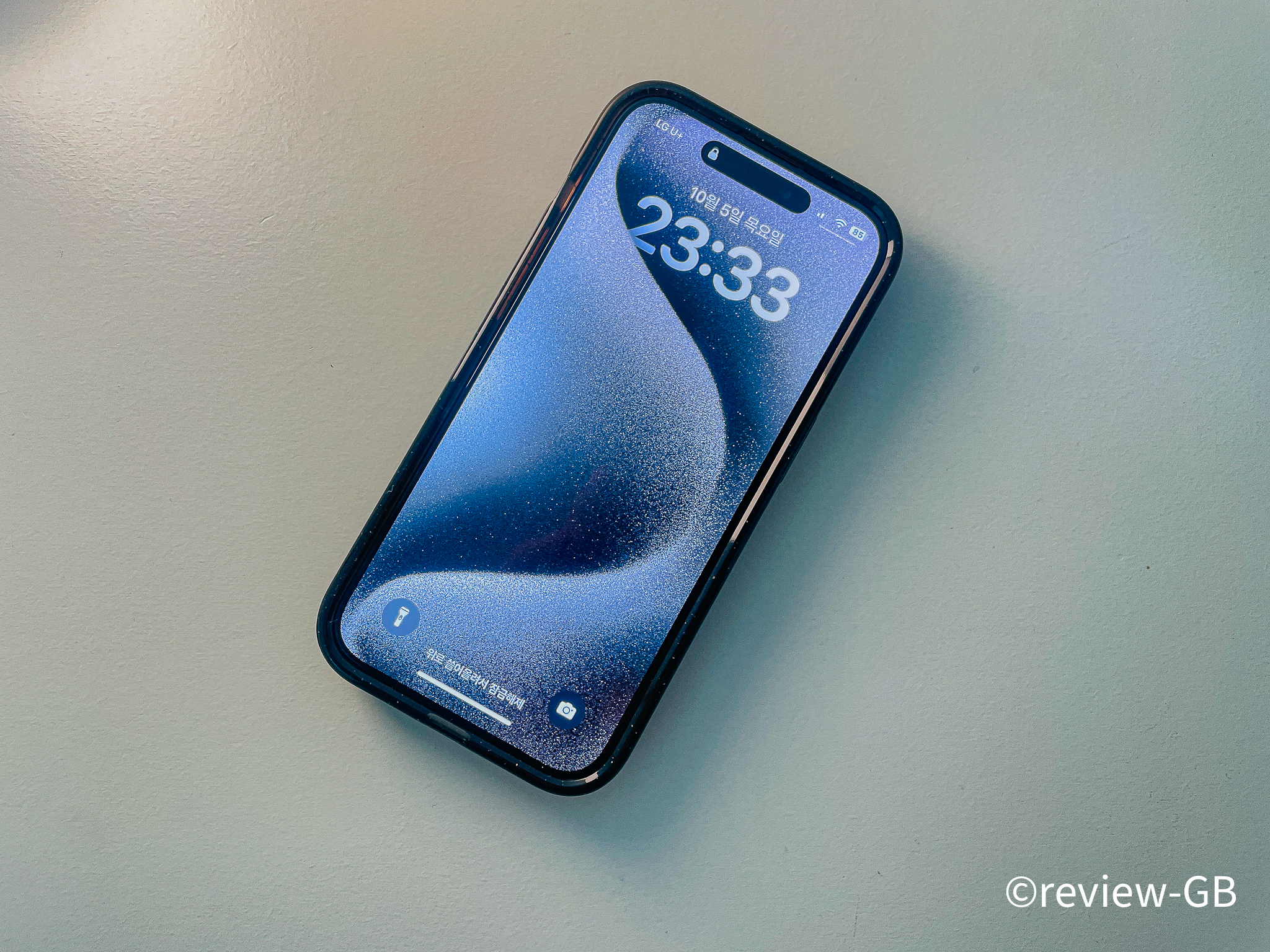 커스텀 디자인 없는 기본 모델은 전반적으로 깔끔한 인상을 준다. 가장 중요한 것은 아이폰 15 프로 시리즈의 내추럴 티타늄과의 조화인데, 나쁘지 않다. 채도 없는 색상끼리의 매칭이라서 그런지 제법 튀지 않고 자연스럽게 매칭된다.