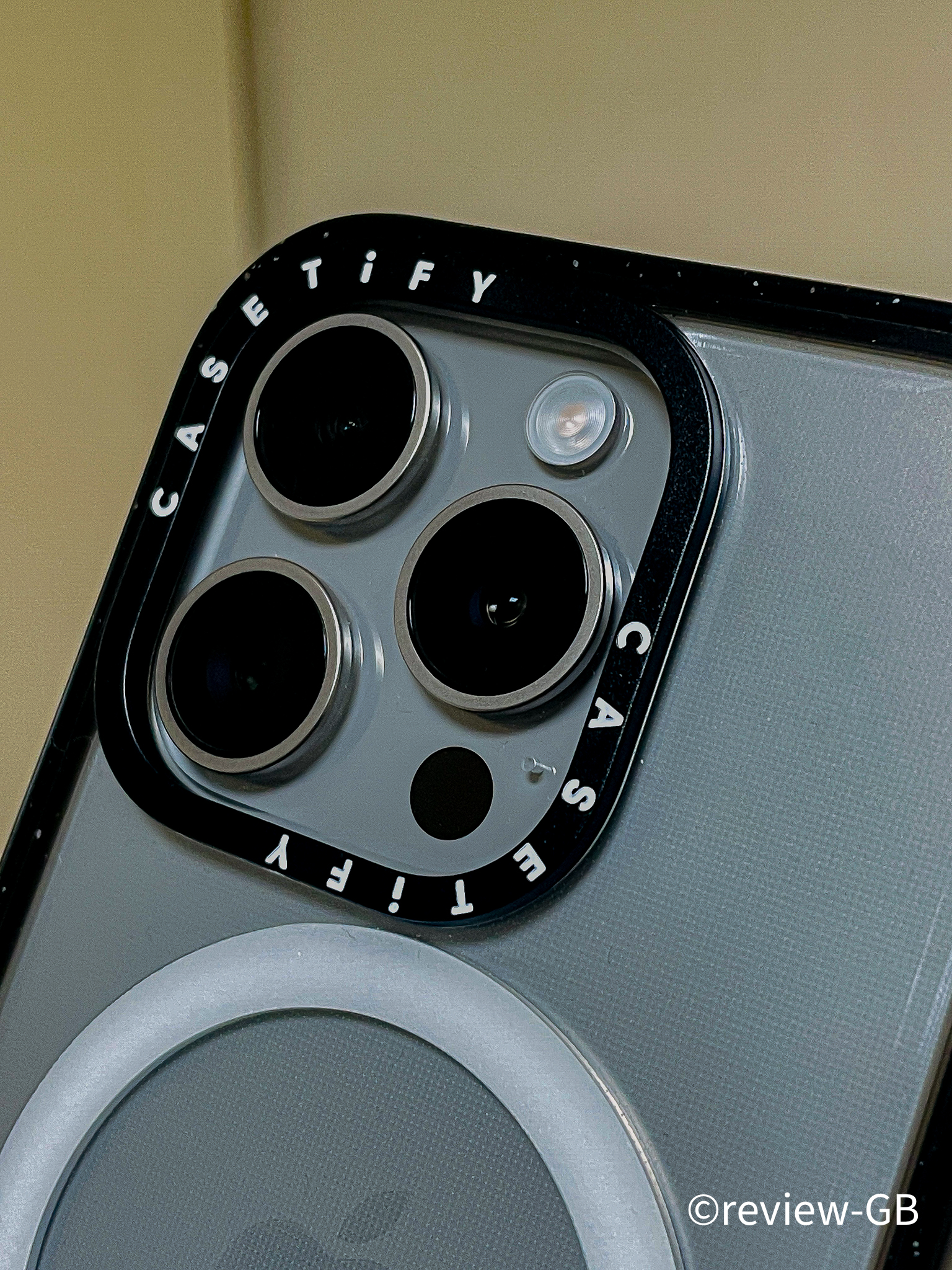 다만 카메라 테두리의 블랙 컬러 라인과 폰 테두리 블랙 컬러 라인, 맥세이프용 자석 라인 등 온갖 라인이 얽혀 있어 임팩트 케이스 매트 블랙 대비 깔끔한 인상은 덜하다.